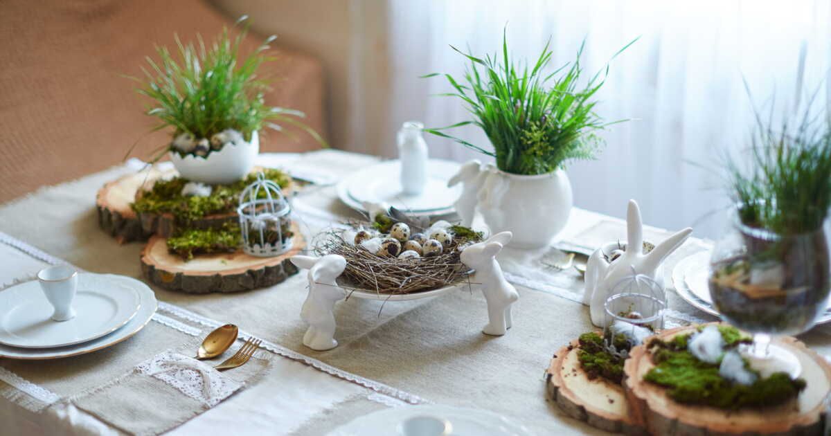 Une table de Pâques ornée de petits œufs