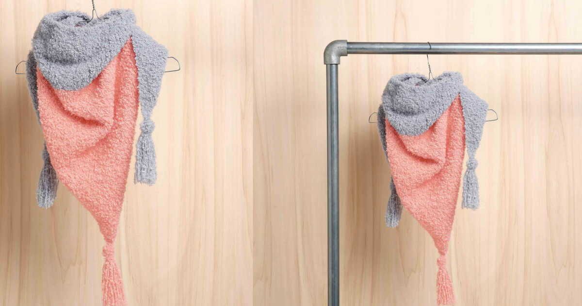 Ce châle douillet est tricoté au point jersey, utilisant un fil exceptionnellement doux. Conçu avec deux couleurs de fil, il se caractérise par ses magnifiques extrémités ornées de glands ou de pompons qui ajoutent une touche d'originalité.