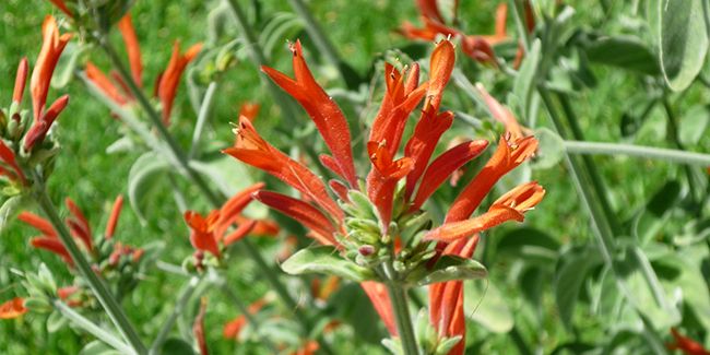 Durant l'été, le jardin s'illumine grâce à ses fleurs tubulaires rouge orangé, mesurant de 3 à 6 cm, qui se présentent en bouquets terminaux. Leur éclat contraste magnifiquement avec le feuillage argenté.