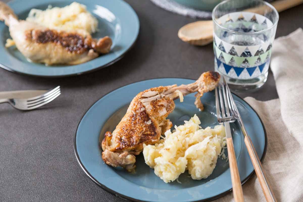 Cuisses de poulet à la bière et purée de choucroute
