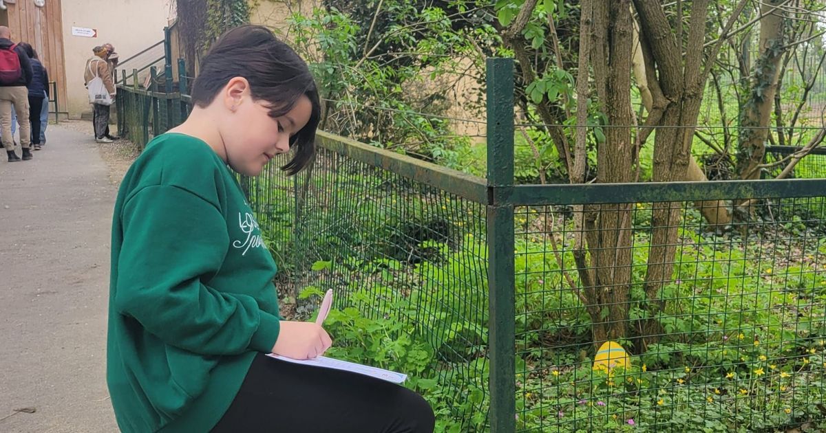 Joanna, accompagnée de sa mère Stéphanie, arpente le parc à la recherche de gros œufs dissimulés. Plutôt que de traditionnels œufs en chocolat, les enfants partent à la quête de grandes boules décorées, placées stratégiquement devant les enclos des animaux. Chaque participant note les emplacements des œufs trouvés.