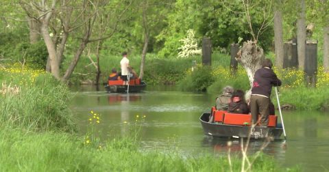 Les marais mouillés, surnommés à juste titre “la Venise verte”, sont scrutés pour leur capacité à absorber l'eau de pluie, donnant ainsi un rôle crucial dans la gestion des crues. Jérémy Cacquineau, guide local, pratique la navigation traditionnelle sur une plate, voguant silencieusement au gré des canaux et profitant de la faune locale.