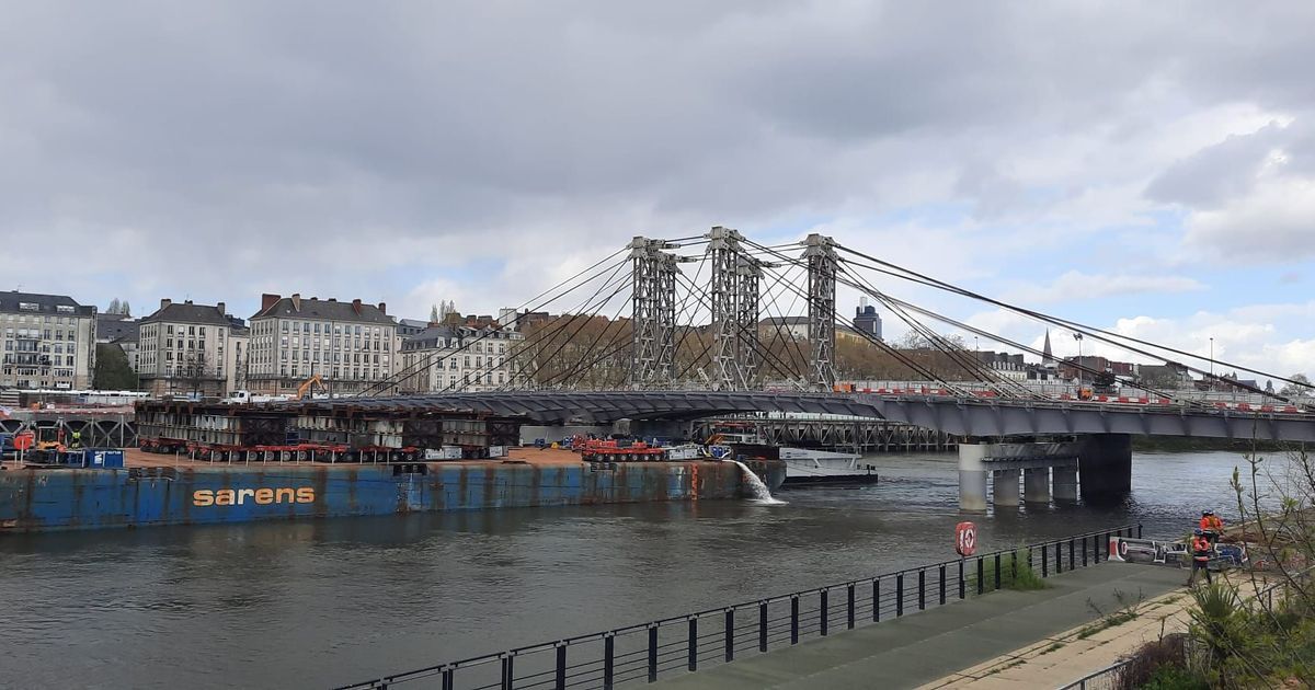 Après une journée de travail intense, le tablier du futur pont Anne de Bretagne a été installé avec succès ce mercredi. Les équipes vont maintenant s'atteler à un ajustement minutieux afin de le positionner au millimètre près avant de passer à des travaux plus traditionnels.